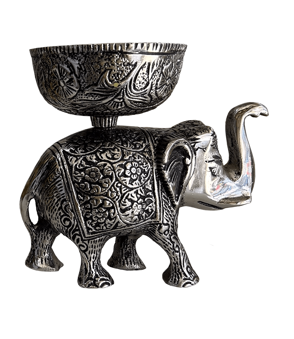 Introducing our exquisite set of decorative elephant candle holders, a perfect blend of traditional craftsmanship and timeless elegance. These intricately designed holders are crafted from high-quality brass and silver-plated metal, showcasing meticulous details that highlight the rich cultural heritage they represent.